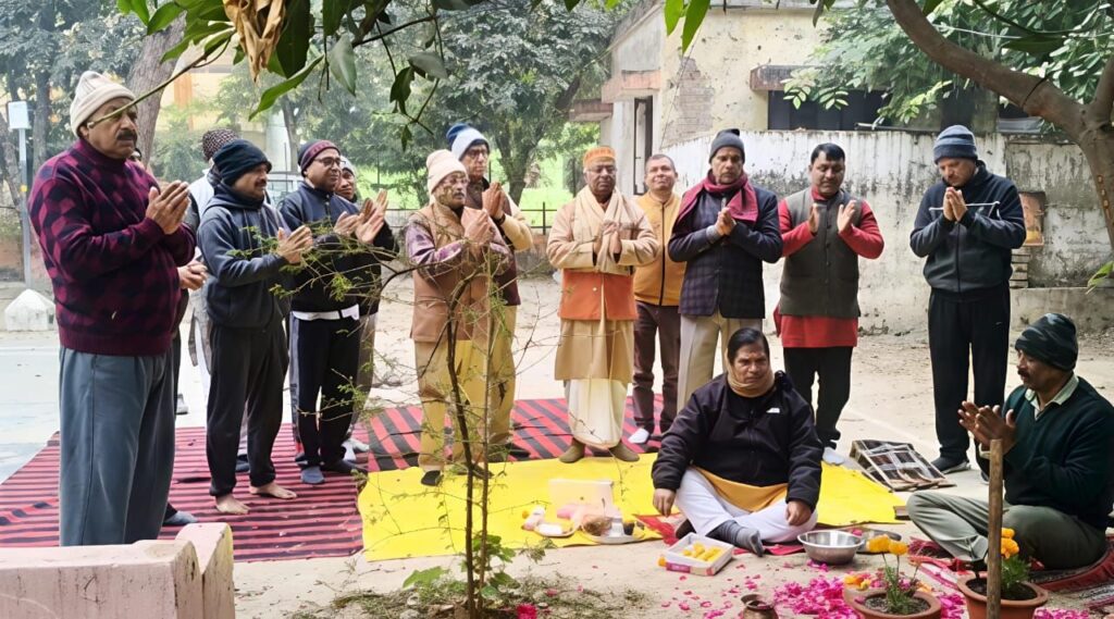 लखनऊ। कृष्णानगर थाना क्षेत्र के इंद्रलोक कॉलोनी स्थित इंद्रेश्वर महादेव मंदिर प्रांगण में आगामी 4 जनवरी को हिंदू सम्मेलन को लेकर भूमि पूजन का आयोजन किया गया। भूमि पूजन के साथ साथ वृक्ष पूजन भी किया गया और आयोजित हिंदू सम्मेलन को सफल बनाने के लिए हनुमान चालीसा का सामूहिक गान भी किया गया।जिसके बाद सकल हिंदू समाज इंद्रलोक कॉलोनी एवं विनय नगर परिक्षेत्र की एक बैठक संपन्न हुई, जिसमें सम्मेलन को सफल बनाने के लिए कार्यक्रम की रूपरेखा तैयार करते हुए लोगों को अलग-अलग जिम्मेदारियां भी सौंपी गई। गौरतलब है कि आगामी 4 जनवरी को होने वाले हिंदू सम्मेलन में राष्ट्र, सनातन, हिंदुत्व एवं पर्यावरण की रक्षा जैसे कई ज्वलंत मुद्दों पर चर्चा होगी। भूमि पूजन कार्यक्रम में डॉक्टर अतुल रस्तोगी, प्रदीप तिवारी, एमडी शुक्ला, विवेक वाजपेई, के के तिवारी, राजेश श्रीवास्त, डॉक्टर नीरज तिवारी, महेश मिश्रा, कमल, शत्रुसूदन, अवधेश मिश्रा, राजीव पांडेय, पुजारी महेंद्र शुक्ला सहित अन्य कई गणमान्य लोग उपस्थित रहे।