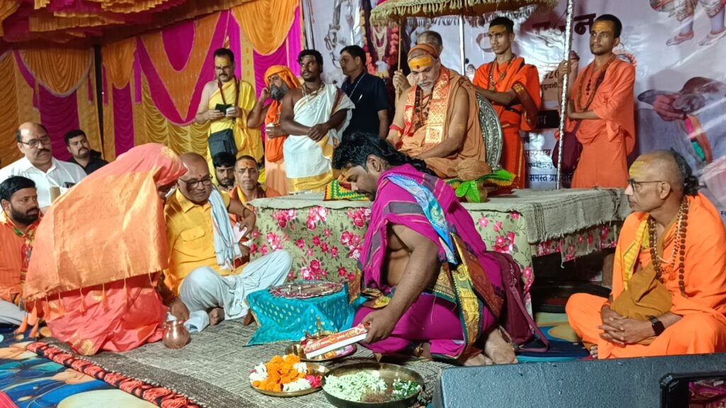 कार्यक्रम के प्रथम दिन शंकराचार्य जी के सानिध्य में पादुका पूजन, वेद मंत्रों के उच्चारण और धार्मिक अनुष्ठानों का आयोजन हुआ। बड़ी संख्या में श्रद्धालुओं ने पंक्तिबद्ध होकर पादुका पूजन किया और आशीर्वाद प्राप्त किया। जिसमें शंकराचार्य जी ने धर्म, संस्कृति और राष्ट्रहित पर अपने विचार व्यक्त करते हुए लोगों को नैतिक जीवन जीने का संदेश दिया। उन्होंने कहा कि जैसे हमारे शरीर में चार वर्ण हैं इस प्रकार हमारे समाज में चार वर्ण बनाए गए हैं इसमें कोई भी उच्च नीच नहीं है आवश्यकता पड़ने पर हर काम हर लोग किया करते हैं।